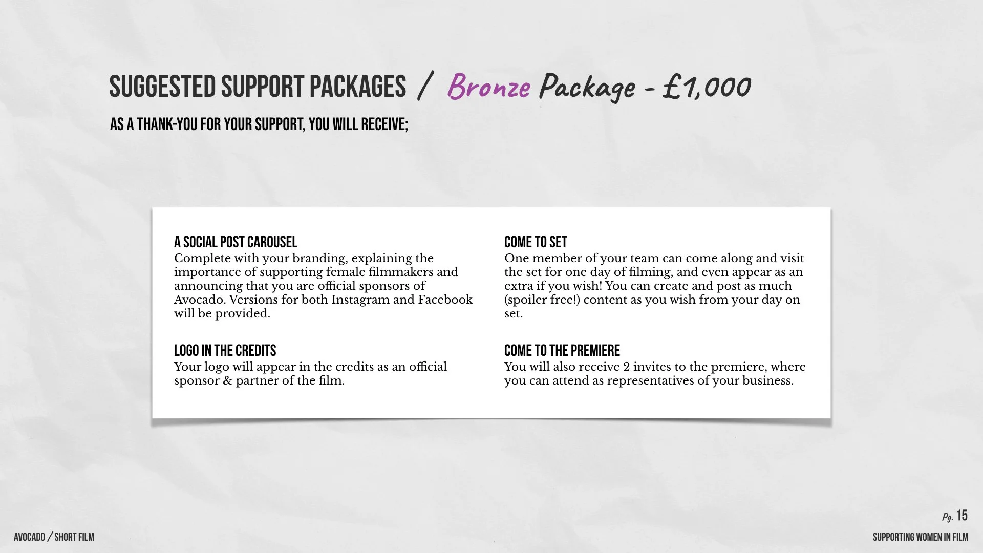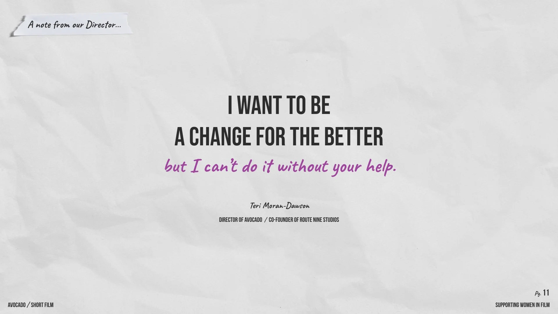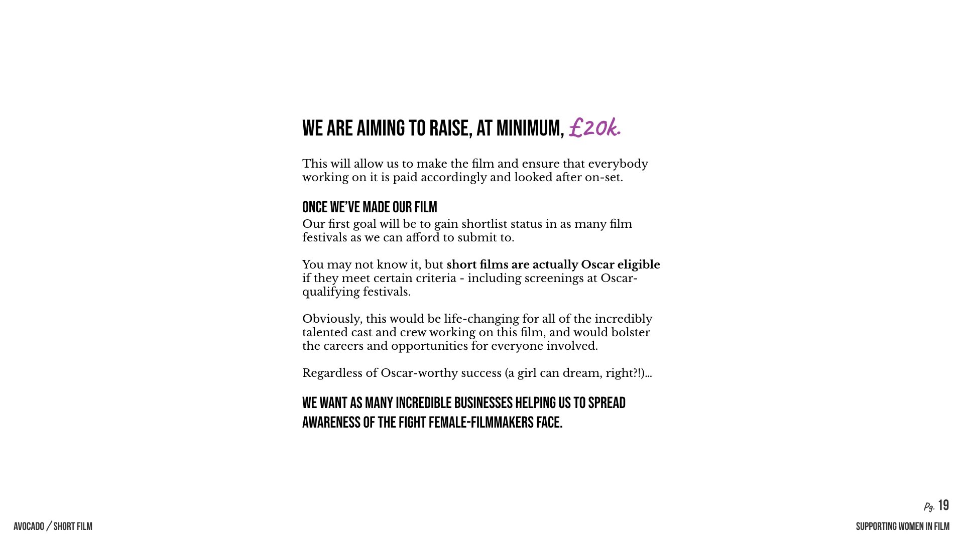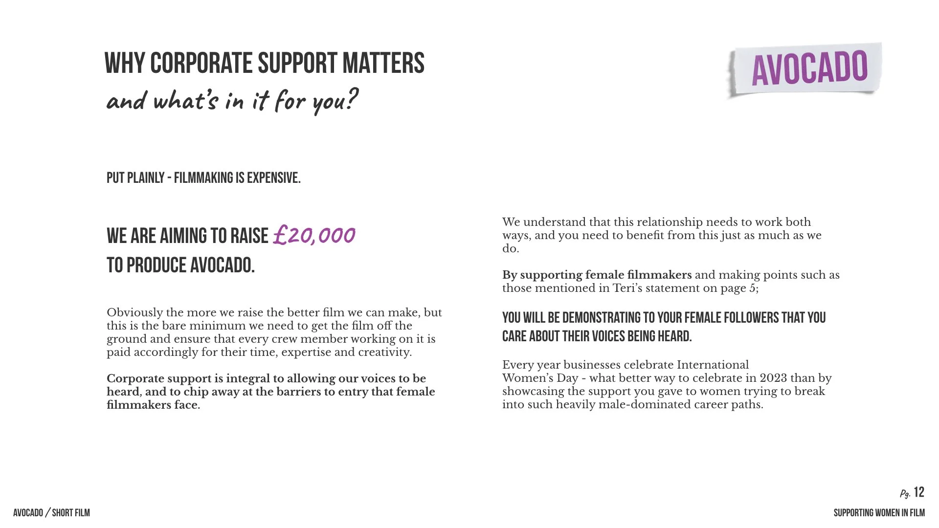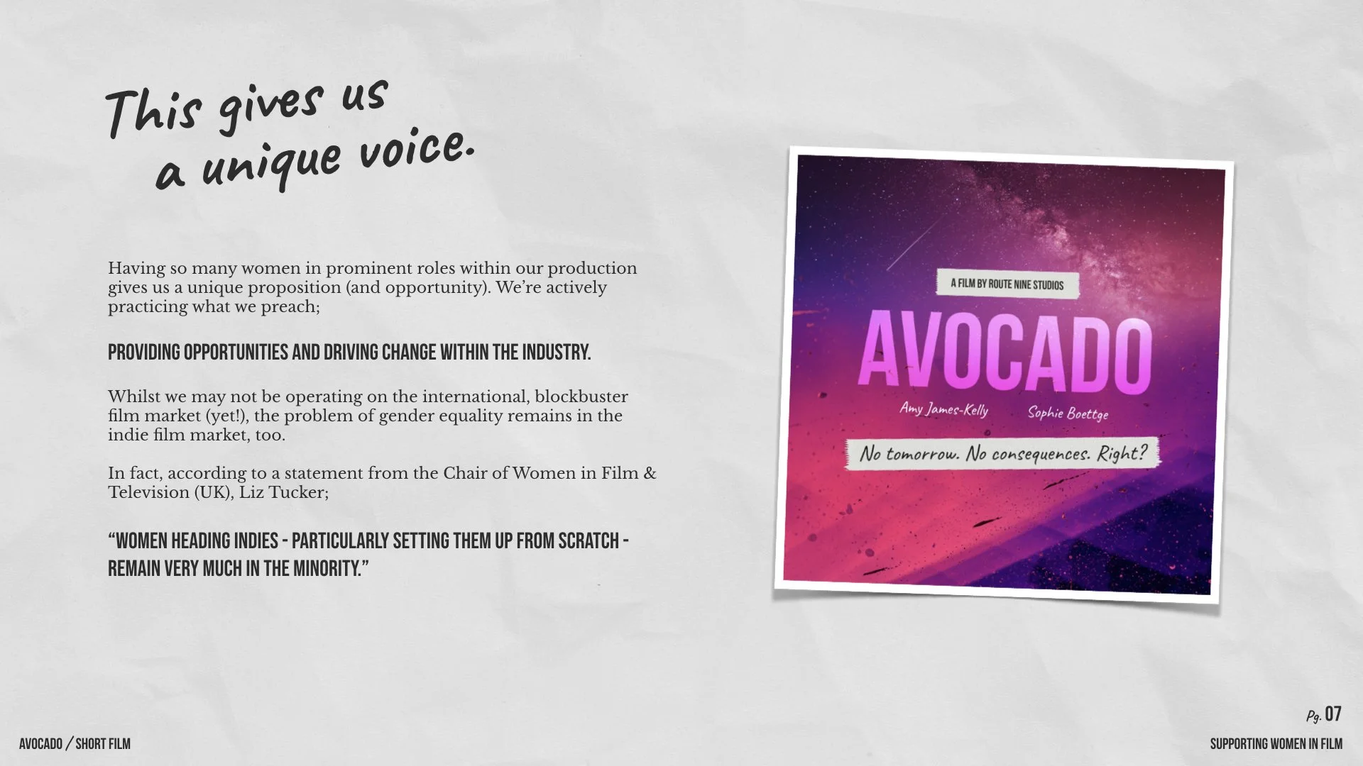 Scroll through our pitch deck below to find out more about the importance of supporting women in film.